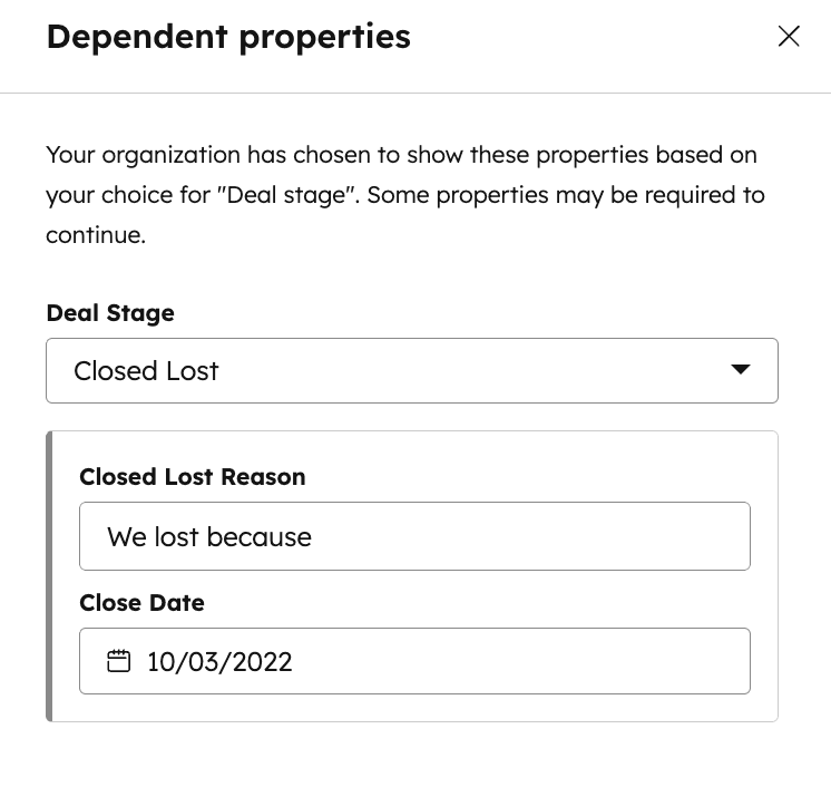 To maintain data quality, require key fields before advancing deals: